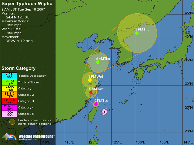 Typhon de force 5 sur une échelle de 5, Wipha est le plus violent des Typhons menaçant la Chine sur les 10 dernières années.