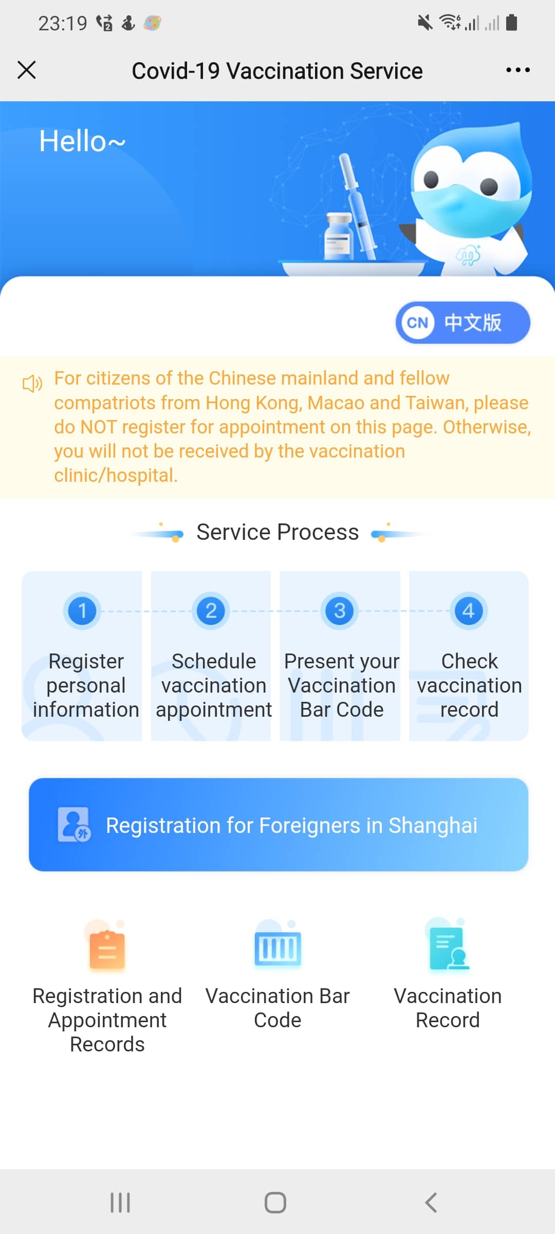 Enregistrement et rendez vous de vaccination par application wechat