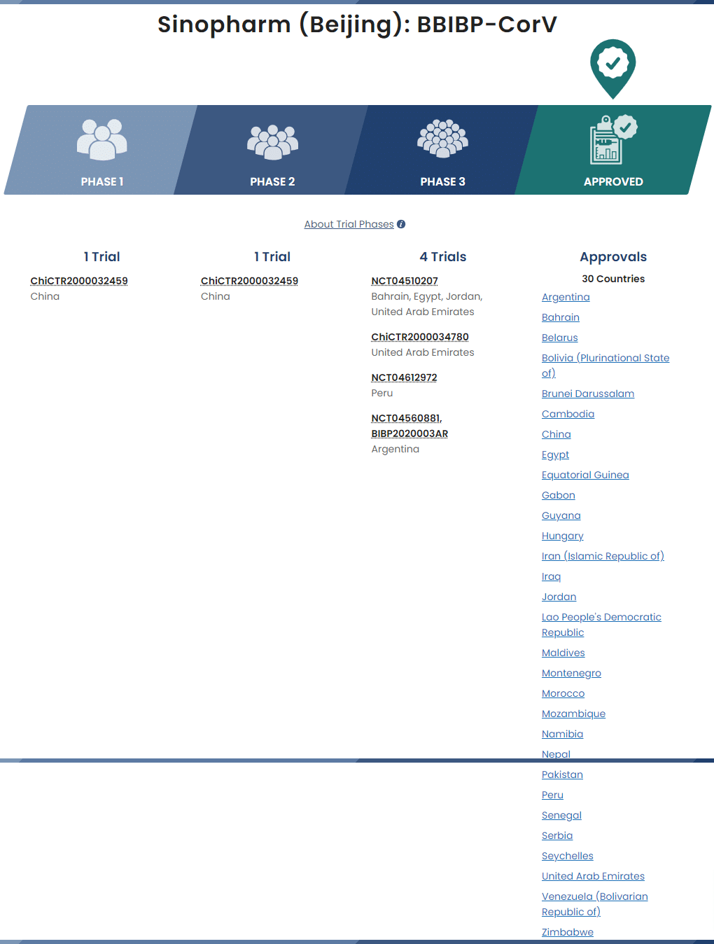 Vaccin chinois BBIBP-CorV Sinopharm / CNBG Vero