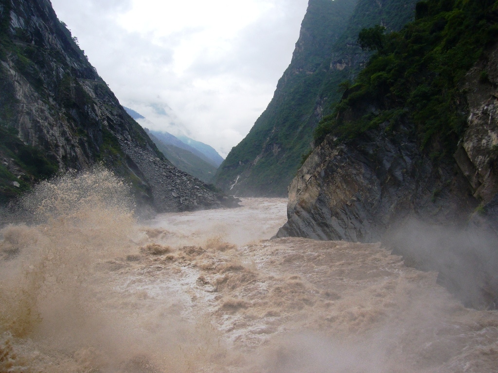 Les Gorges du Tigre ne sont pas forcement les gorges les plus belles gorges du Yunnan mais ce sont les plus impressionnantes que j’aurais vu de tout mon voyage tant le débit et la violence de l’eau sont élevés.