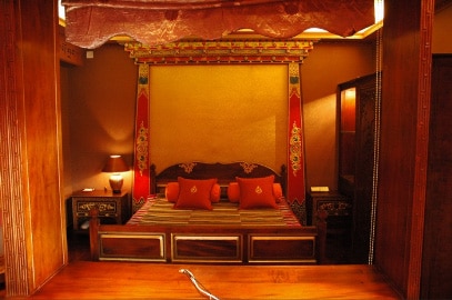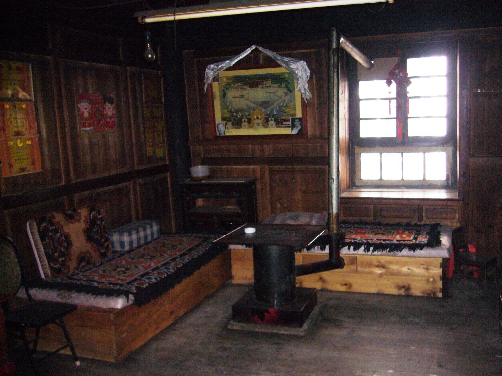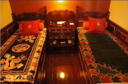J’en ai profité pour visiter les chambres qui sont dans un état remarquable de propreté (pas hors de prix 260 à 380 RMB en direct) et toutes décorée en meubles tibétains.