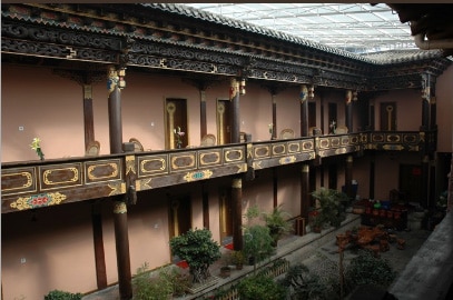 L’hotel est pas mal placé juste à coté de la grande place de Shangri-la (Zhongdian) et de son impressionnant bâtiment rouge. Environ 400 RMB la nuit sur Ctrip.