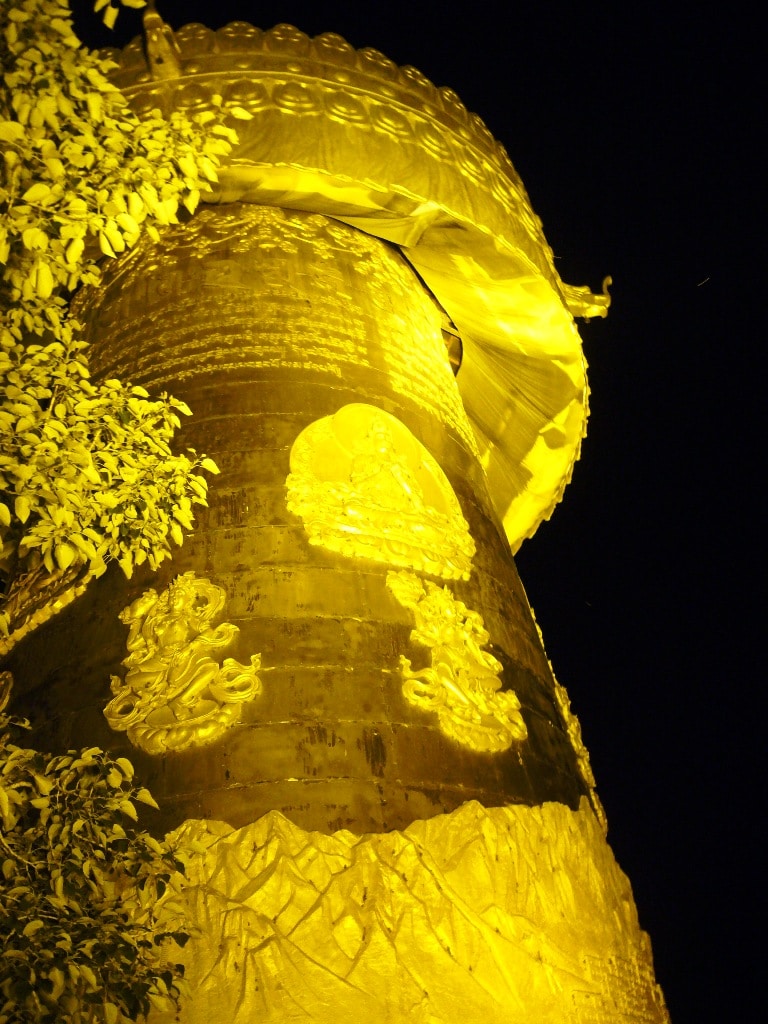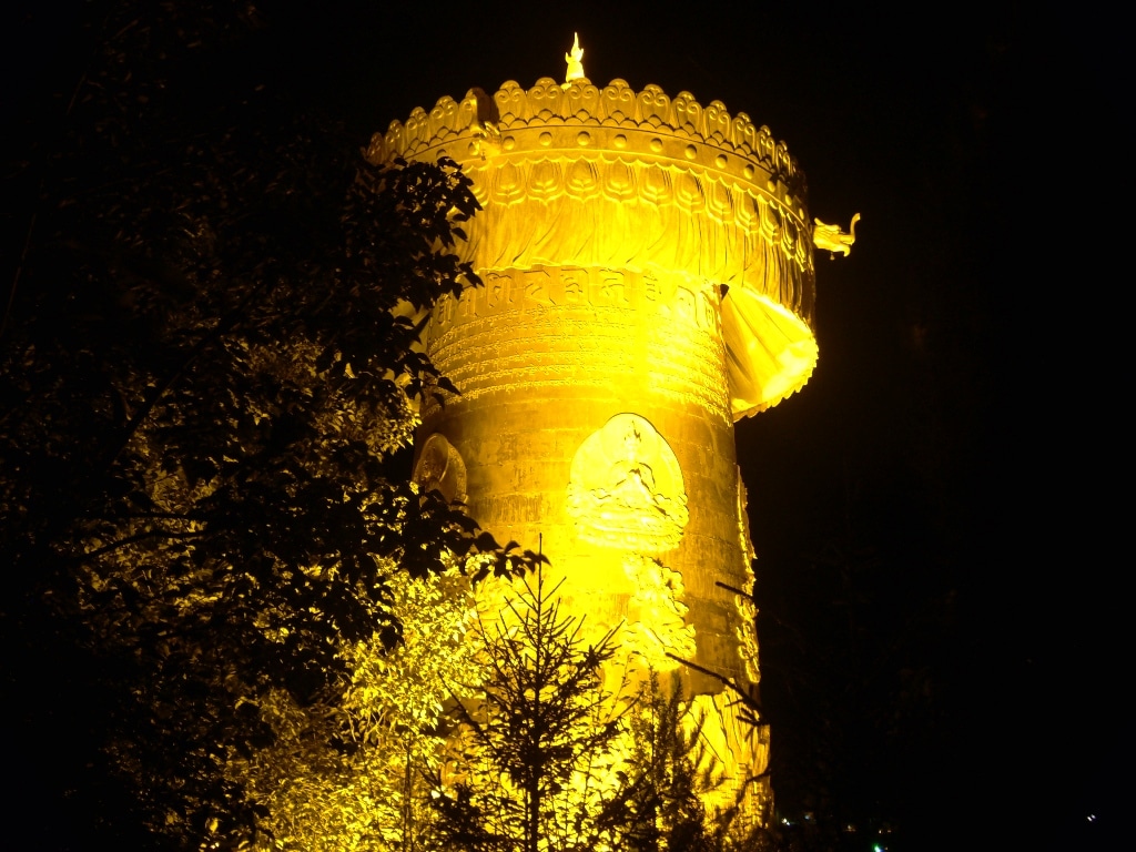 Après diner j’ai prolongé ma visite du vieux Shangri-La par celle du temple qui le surplombe. L’entrée est gratuite, il n’y a pas grande chose à voir mais le temple est assez joli et permet d’avoir une vue en hauteur sur la ville. C’est encore plus beau la nuit, surtout la tour des prières.