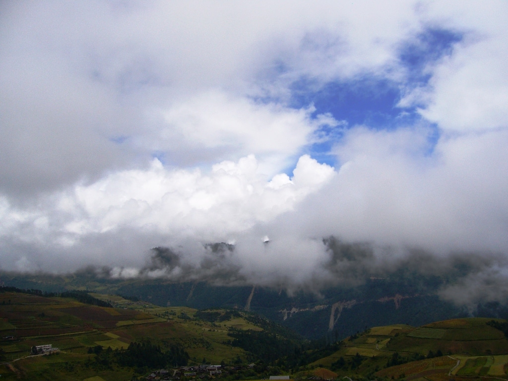 Le temps est particulier dans les environs de Shangri-La car il peut pleuvoir 5 minutes même violemment et cela s’arrête de suite.