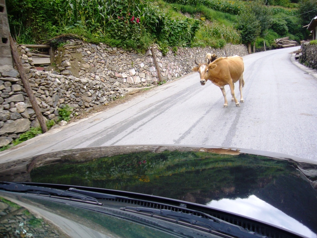 Par moment on se retrouve avec vaches, chèvres ou ânes en liberté au milieu de la route…